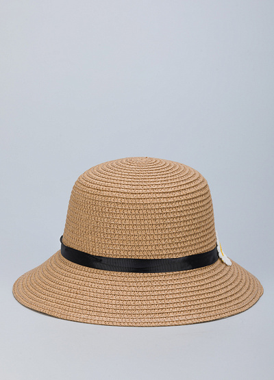 • Детская шляпа из искусственной соломы от бренда Pacco Rosso. Модель имеет удобные поля, защищающие от солнца. Высокая тулья. Плоское дно и комфортная фиксация на голове. Декоративная лента с декором вокруг тульи.