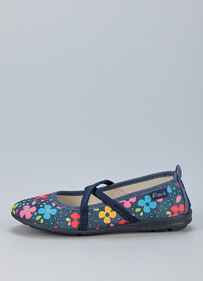 • Детские балетки от бренда Alberola. Модель с принтом. Эластичные ремешки на подъеме. Закругленный носок. Петли для подтягивания сзади. Плоская рифленая подошва.