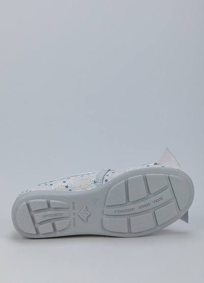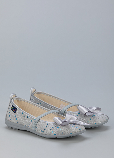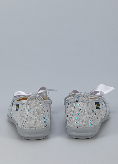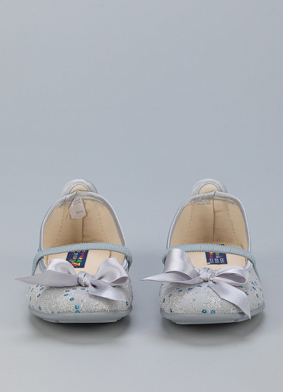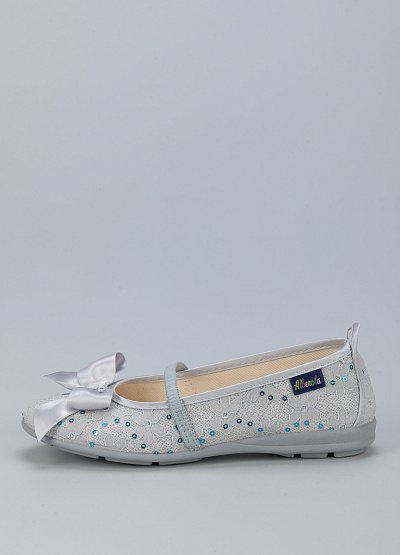• Детские балетки от бренда Alberola. Модель с кружевом и пайетками. Декор в виде атласного банта. Эластичный ремешок на подъеме. Плоская рифленая подошва.