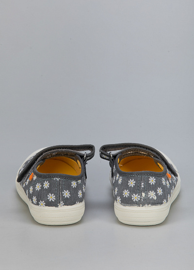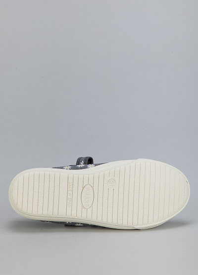 • Детские балетки от бренда Vulladi. Закругленный носок. Застежка-липучка на подъеме. Принт по всей поверхности. Ярлык сбоку. Рифленая подошва.