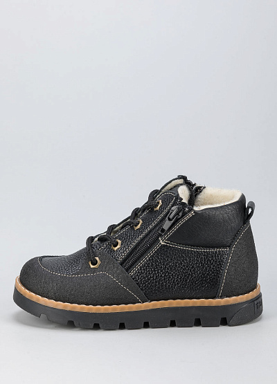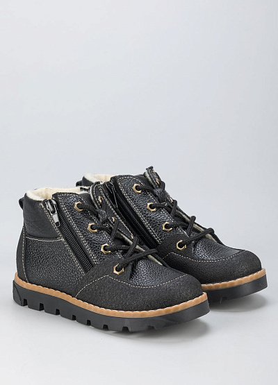 • Детские ботинки из натуральной кожи бренда Tapiboo. Закругленный носок. Открытая шнуровка в тон. Замок на молнии сбоку с обеих сторон. Петли для подтягивания сзади. Отделка мехом. Логотип на пятке. Плоская рифленая подошва.
