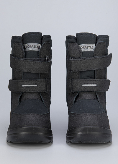 • Детские дутыши от бренда Aurorastar. Закругленный носок. Две застежки-липучки вокруг голени. Логотип на язычке. Петли для подтягивания сзади. Массивная рифленая подошва.