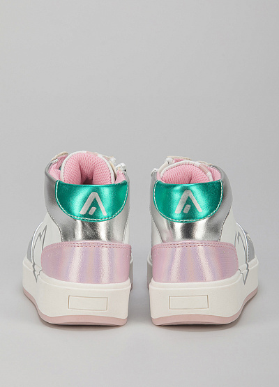 • Детские кеды из экокожи от бренда Asso. Закругленный носок. Открытая шнуровка в тон. Завышенный подъем. Боковой замок на подъеме. Модель с принтом. Плоская, широкая подошва.