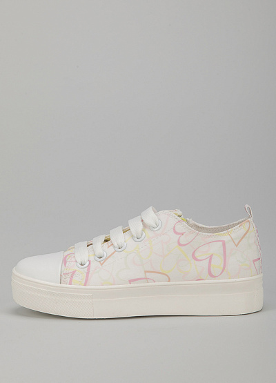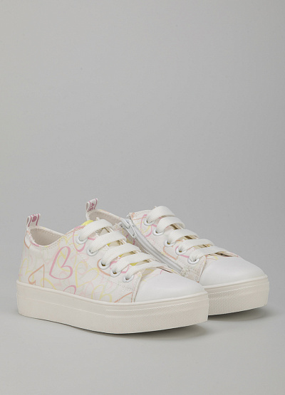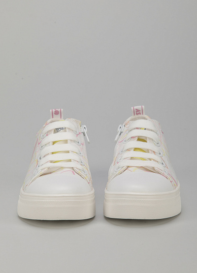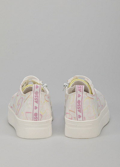 • Детские кеды из текстиля от бренда Asso. Закругленный носок. Открытая шнуровка в тон. Модель с принтом. Плоская подошва в тон.