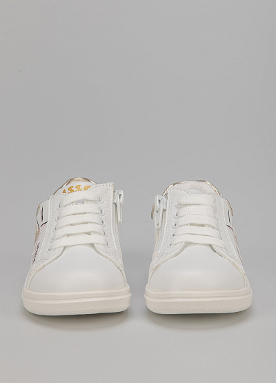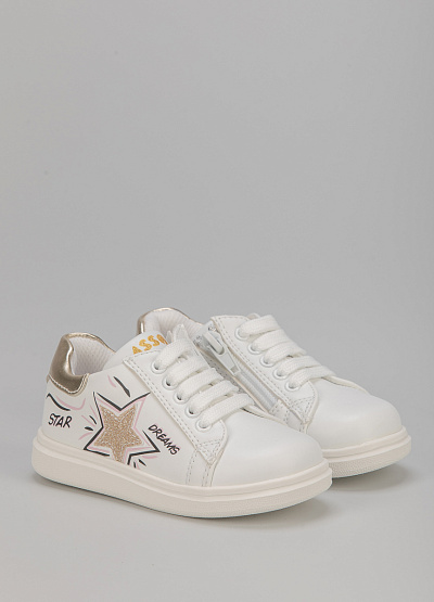 • Детские кеды из экокожи от бренда Asso. Закругленный носок. Открытая шнуровка в тон. Завышенный подъем. Модель с принтом. Плоская подошва в тон.