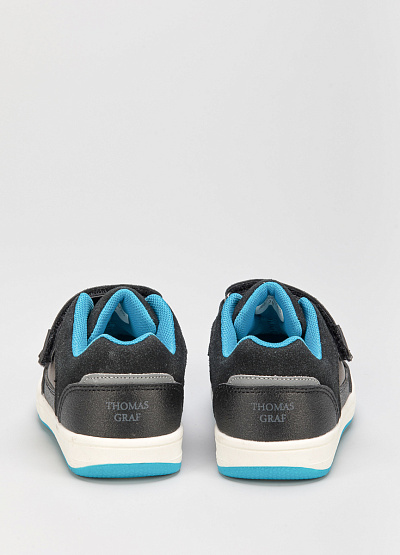 • Детские кроссовки в комбинированном дизайне от бренда Thomas Graf. Модель выполнена из экокожи и текстиля. Две застежки-липучки на подъеме. Плоская рифленая подошва.