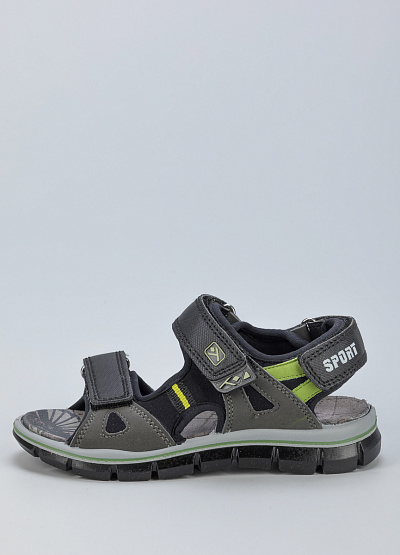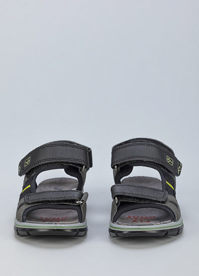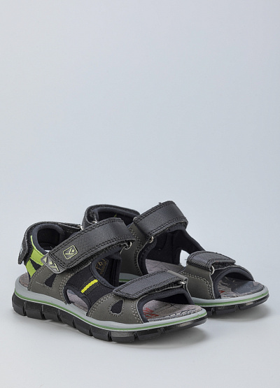 • Детские сандалии из экокожи и текстиля от бренда Imac. Модель с открытым носком. Застежка-липучка на трех ремешках. Плоская рифленая подошва.