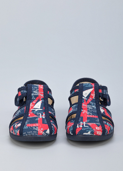 • Детские сандалии от бренда Olitas. Модель с принтом. Застежка-липучка на ремешке. Плоская подошва на низком каблуке.