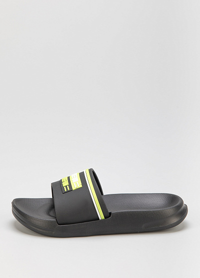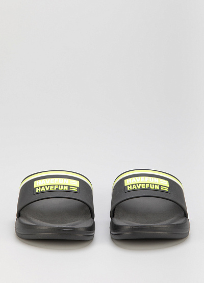 • Детские сланцы от бренда Timedev. Модель с широкой перемычкой. Принт с надписью. Плоская подошва с небольшим подъемом.