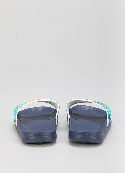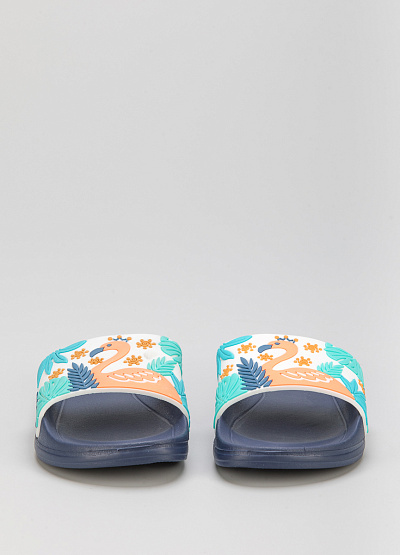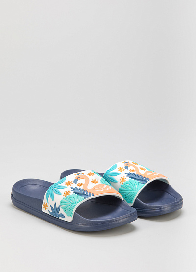 • Детские сланцы от бренда Timedev. Широкая перемычка украшена аппликацией с изображением. Плоская подошва с небольшим подъемом.