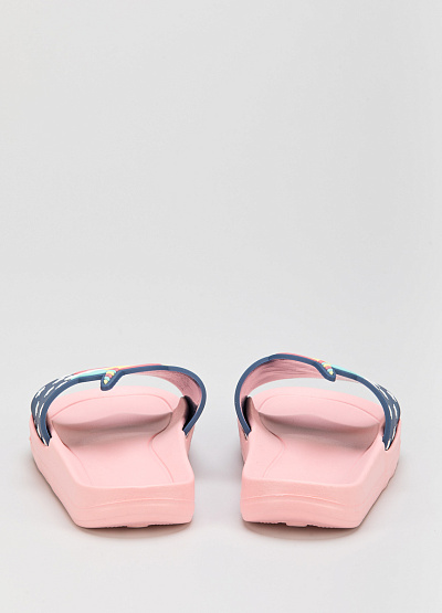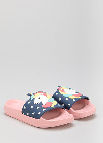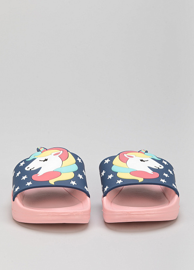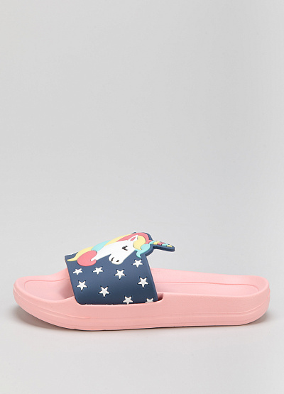 • Детские сланцы от бренда Timedev. Широкая перемычка украшена аппликацией с изображением. Плоская подошва с небольшим подъемом.