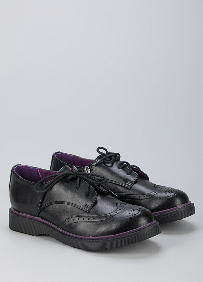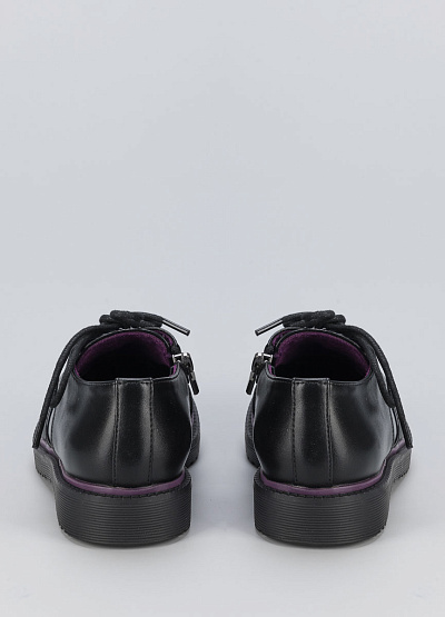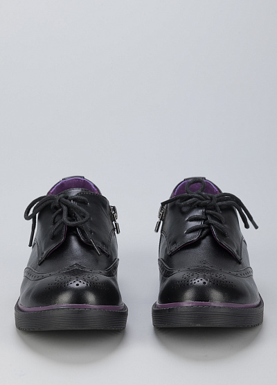 • Детские туфли из экокожи от бренда BETSY. Открытая шнуровка в тон. Боковая молния. Закругленный носок. Мыс оформлен рельефным швом. Контрастная окантовка вдоль стопы. Плоская рифленая подошва на низком каблуке.