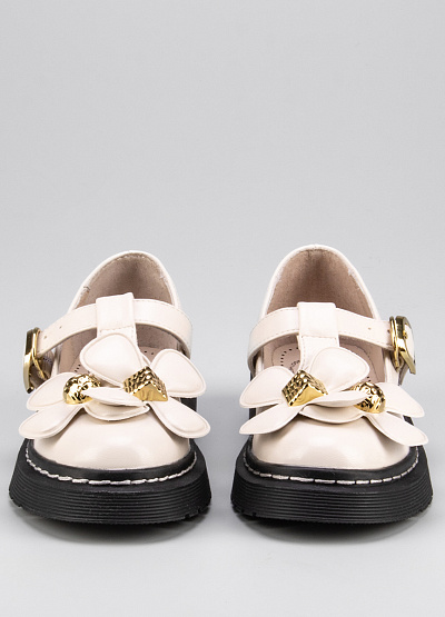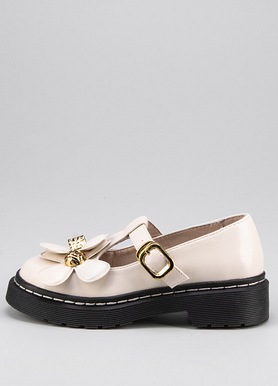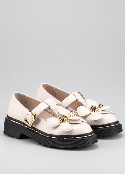 • Детские балетки из экокожи от бренда BETSY. Закругленный носок. Застежка-ремешок на щиколотке. Декор в виде крупных цветков. Широкая рифленая подошва на низком каблуке.