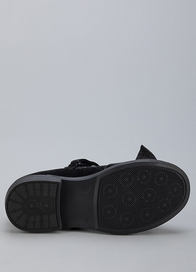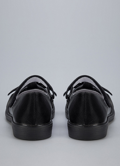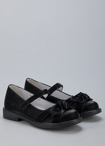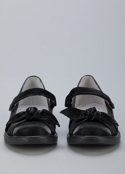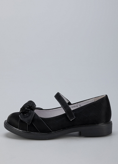 • Детские туфли из экокожи от бренда BETSY. Закругленный носок. Декоративный бант. Ремешок с застежкой липучкой на подъеме. Боковая молния. Плоская подошва на низком каблуке.