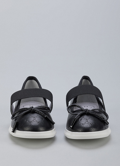• Детские балетки из экокожи от бренда BETSY. Закругленный носок. Сквозная перфорация. Декоративный узел в виде банта. Эластичный ремешок на подъеме. Плоская рифленая подошва.