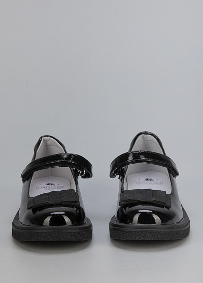• Детские балетки из экокожи от бренда Thomas Graf. Закругленный носок. Декор в виде банта по центру. Ремешок на застежке-липучке. Плоская подошва на низком каблуке.