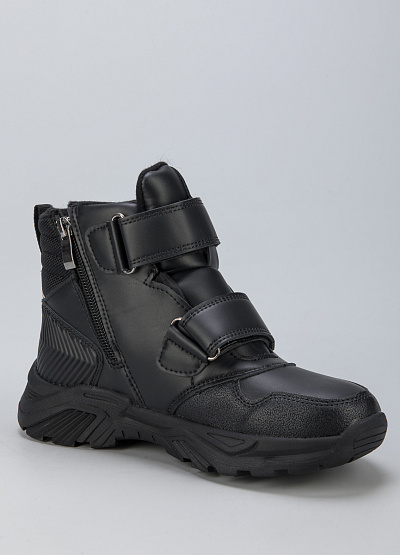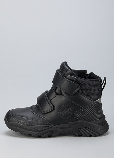 • Детские ботинки из экокожи от бренда CROSBY. Закругленный носок. Две застежки липучки. Тисненый логотип сбоку. Боковая молния. Массивная рифленая подошва.