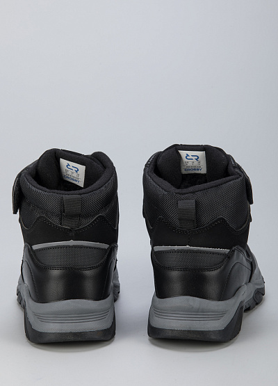• Детские ботинки из экокожи от бренда CROSBY. Закругленный носок. Открытая шнуровка на кулиске. Застежка-липучка на подъеме. Петли для подтягивания сзади. Массивная рифленая подошва.