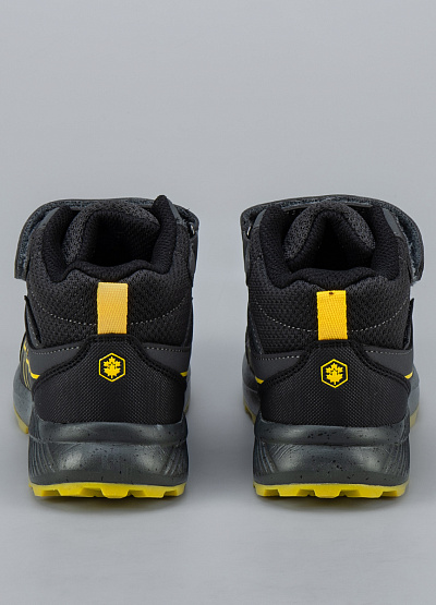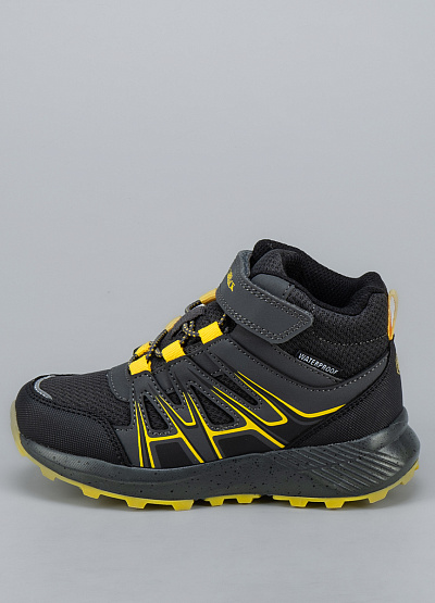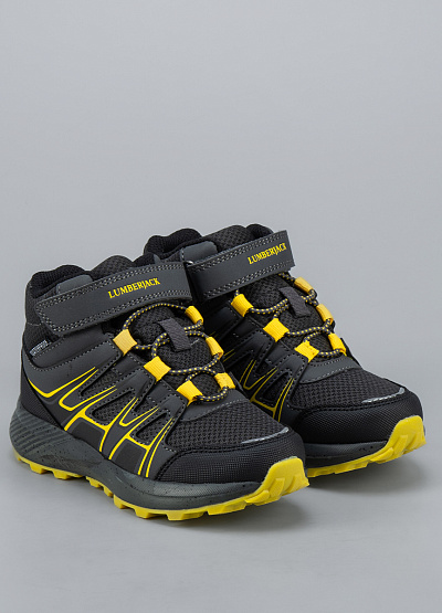 • Детские ботинки от бренда Lumberjack. Закругленный носок. Открытая шнуровка в тон. Ремешок на липучке украшен логотипом. Петли для подтягивания сзади. Массивная рифленая подошва.