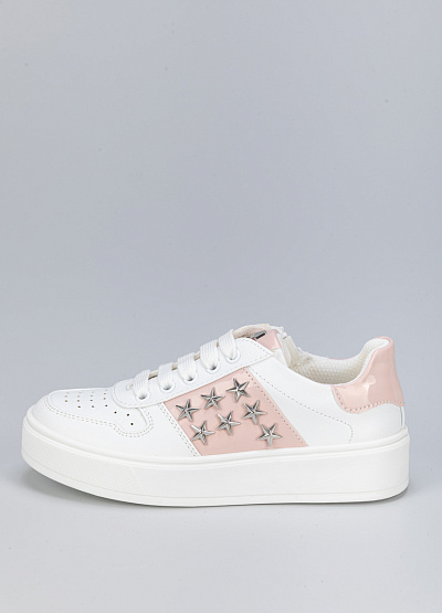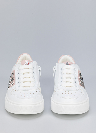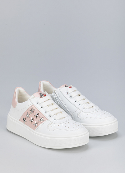 • Детские кеды бело-розового цвета из экокожи от бренда Asso. В них ваши дети почувствуют легкость, комфорт и поддержку для достижения высоких результатов. Модель на шнуровке. Широкая подошва. Боковая молния надежно зафиксирует стопу. Декоративные звезды придадут яркости и уникальности.