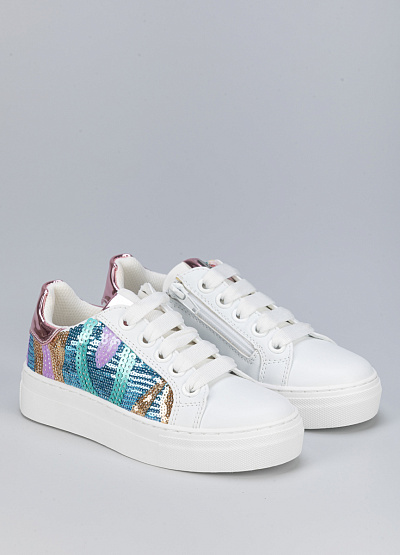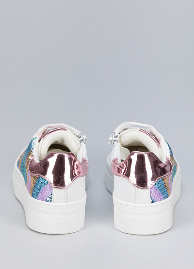 • Детские кеды белого цвета из экокожи от бренда Asso. В них ваши дети почувствуют легкость, комфорт и поддержку для достижения высоких результатов. Модель на шнуровке. Закругленный носок. Широкая подошва. Разноцветные пайетки придадут яркости и уникальности.