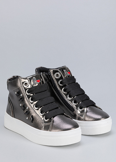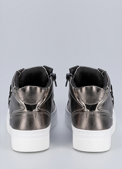 • Детские кеды серебристого цвета из экокожи от бренда ASSO. Универсальная расцветка и дизайн гармонично впишутся в любой образ вашего ребенка и будут отличным дополнением к нему. Широкая подошва прочно фиксирует ногу, обеспечивая мягкость при ходьбе и обладает отличной гибкостью. Модель отлично подходит для активных игр и для долгих прогулок.