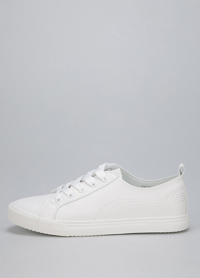 • Детские кеды из экокожи от бренда Keddo. Закругленный носок. Открытая шнуровка в тон. Петли для подтягивания сзади. Плоская подошва.