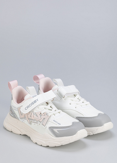 • Детские кроссовки бело-розового цвета от бренда CROSBY. Модель подойдет для долгой летней прогулки и для повседневной носки. Широкая подошва с широким ремешком прекрасно сочетается с любым образом, создавая эффектный стильный контраст. Яркий принт дополнительно украсит образ.