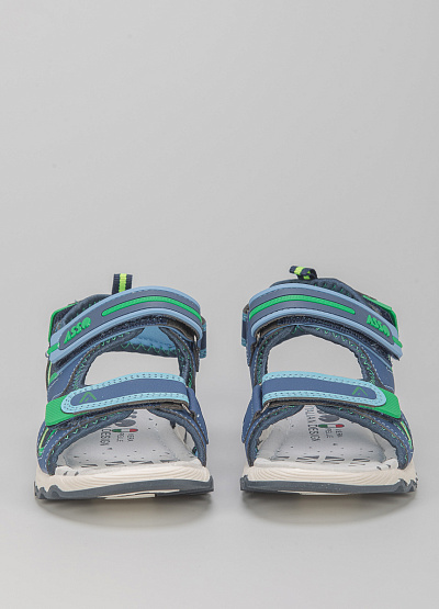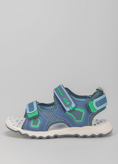 • Детские сандалии из экокожи от бренда Asso. Модель с двумя широкими перемычкам. Застежка-липучка. Плоская рифленая подошва.