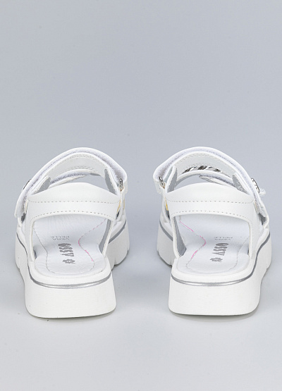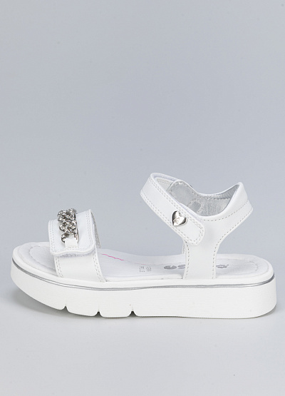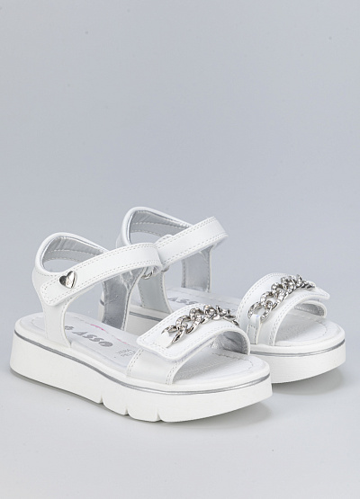 • Детские сандалии белого цвета из экокожи от бренда Asso. Очаровательная модель для самых маленьких с декором из серебряной цепи. Ремешки с липучкой обеспечат комфорт и стабилизацию. Они практичные, удобные и комфортные.