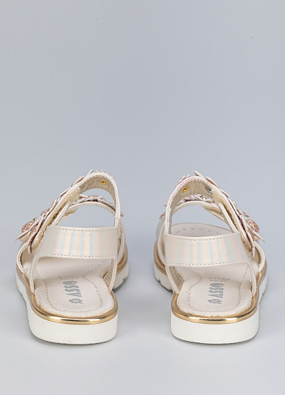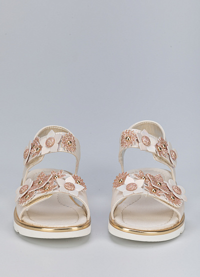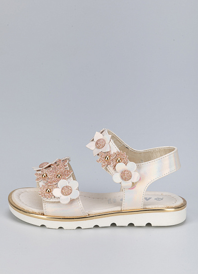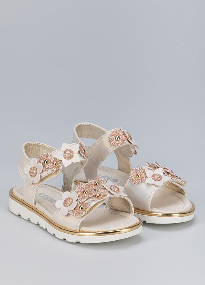 • Детские сандалии бежевого цвета из экокожи от бренда Asso. Очаровательная модель для самых маленьких с декором из цветов. Ремешки с липучкой обеспечат комфорт и стабилизацию. Они практичные, удобные и комфортные.