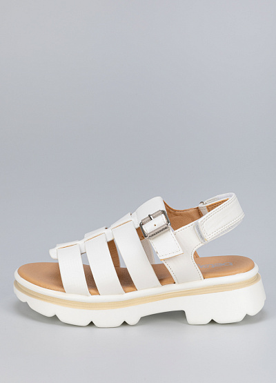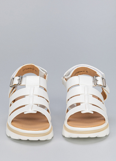 • Женские сандалии белого цвета из экокожи от бренда BETSY. Модель подойдет для долгой летней прогулки и для повседневной носки за счет своей массивной подошвы. Они прекрасно сочетаются не только с джинсами, брюками, шортами, но и с легкими и воздушными платьями миди и макси, создавая эффектный стильный контраст.
