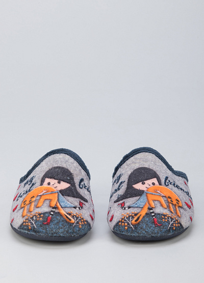 • Детские тапочки от бренда Gema. Модель с закрытым носком. Принт. Плоская подошва.