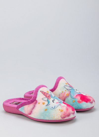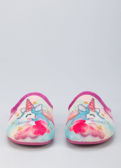 • Детские тапочки от бренда Gema. Модель с закрытым носком. Принт. Плоская подошва.