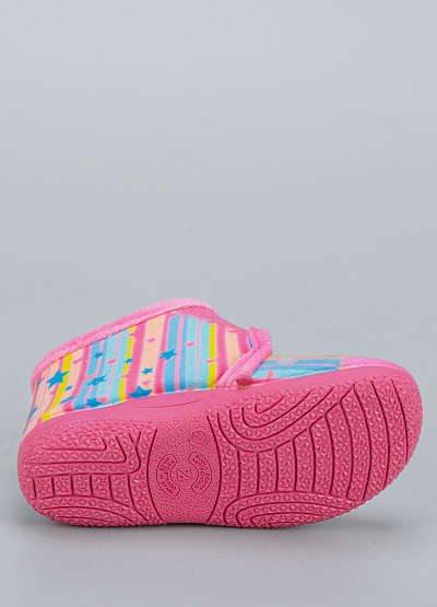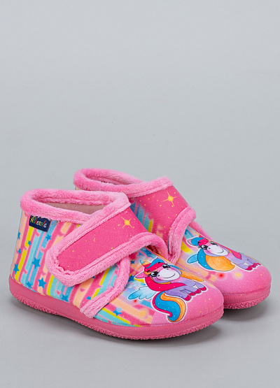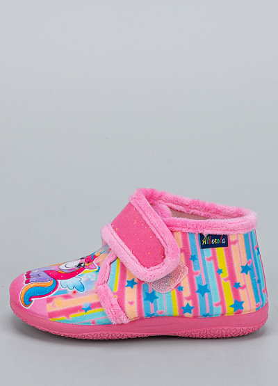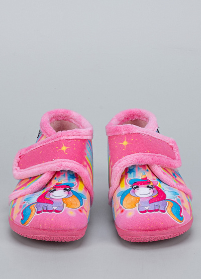 • Детские тапочки Alberola — это уютная и весёлая модель для девочек, оформленная в нежных радужных тонах с изображением единорога. Яркий дизайн поднимает настроение, а мягкий флис внутри обеспечивает комфорт и тепло в холодное время года. Удобная застёжка на липучке облегчает надевание и надёжно фиксирует обувь на ножке.