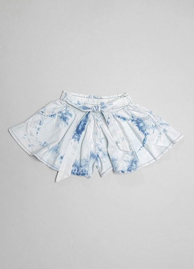 • Детская юбка-шорты голубого цвета из хлопка от немецкого бренда Thomas Graf. Расклешенная модель с эластичным поясом с завязками в тон. Прорезные карманы по бокам.