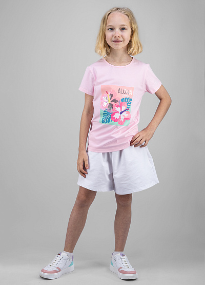 • Детская футболка розового цвета из хлопка от бренда Thomas Graf. Лицевая часть декорирована принтом. Короткие рукава. Круглый вырез.