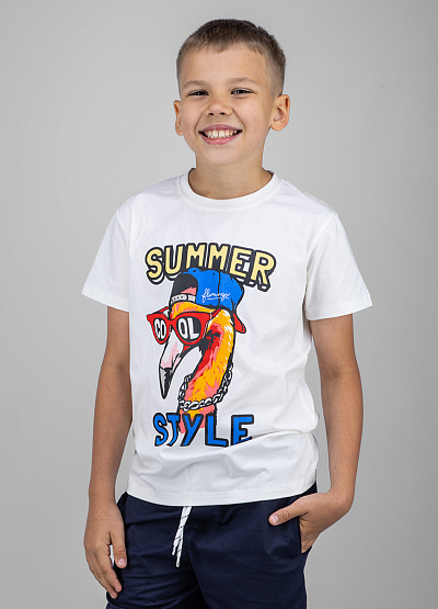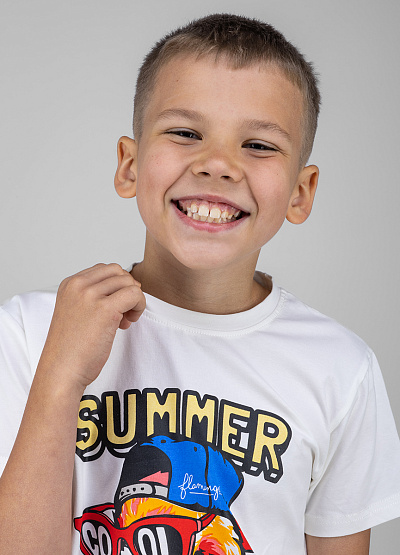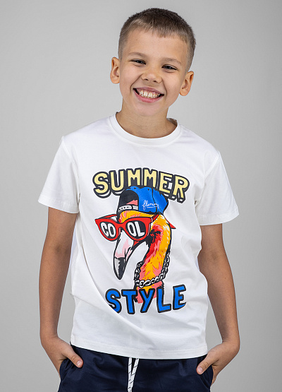 • Детская футболка белого цвета из хлопка от бренда Thomas Graf. Лицевая часть декорирована принтом. Короткие рукава. Круглый вырез.