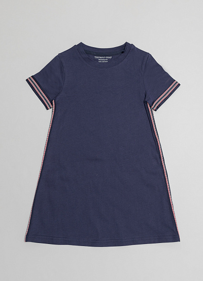 • Детское платье-футболка синего цвета от немецкого бренда Thomas Graf. Модель прямого кроя из хлопка. Лампасы по бокам и на рукавах. Средняя длина. Круглый вырез. Короткие рукава.
