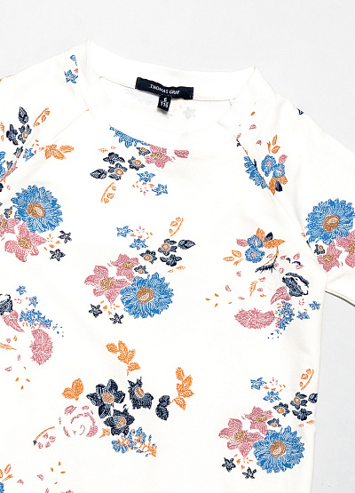 • Детское платье от бренда Thomas Graf. Модель прямого кроя. Круглый вырез. Длинные рукава. Принт по всей поверхности.