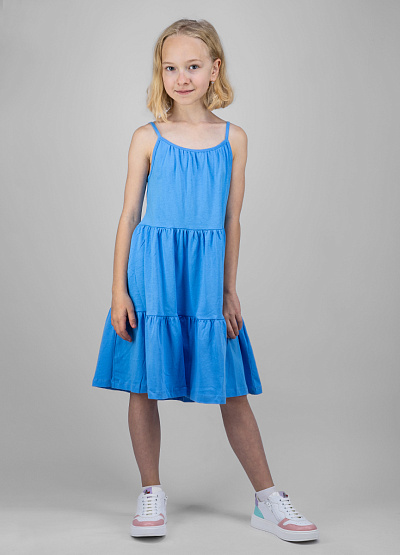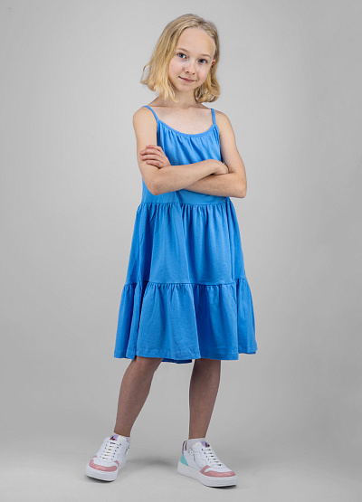• Детский голубой сарафан из хлопка от бренда Thomas Graf. Модель свободного кроя сочетает в себе комфорт, стиль и непринужденность.