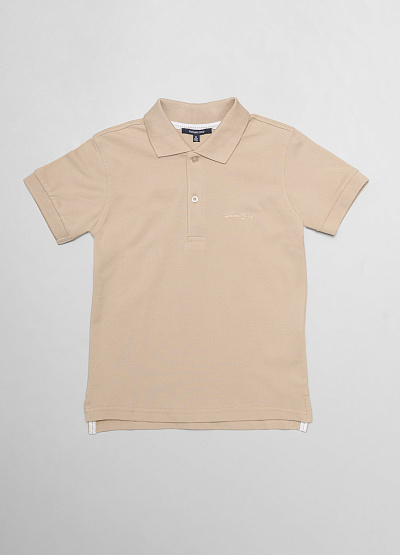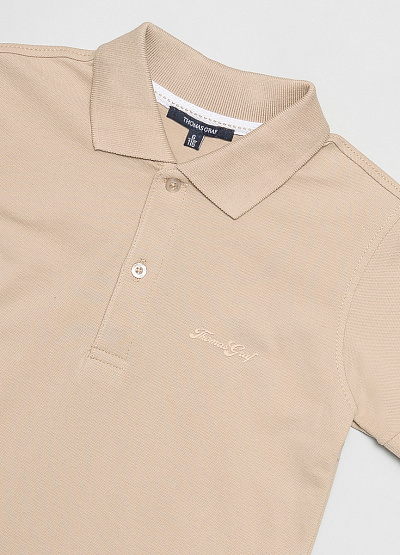 • Детское поло бежевого цвета от немецкого бренда Thomas Graf. Модель выполнена из хлопка. Логотип на боковой части груди. Отложной воротник. Короткие рукава.