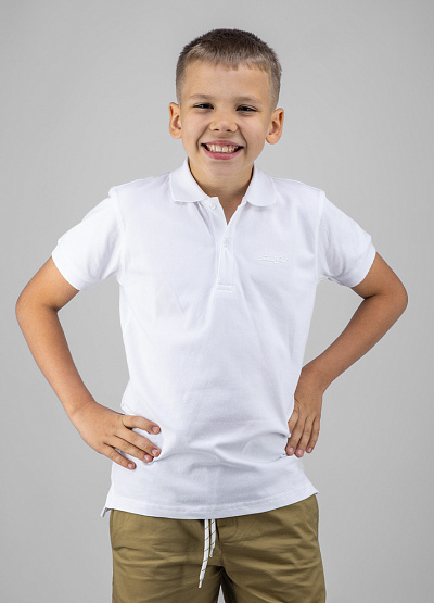 • Детское поло белого цвета из хлопка от бренда Thomas Graf. Модель свободного кроя. Отложной воротник с застежкой на пуговицы. Короткие рукава. Логотип сбоку.