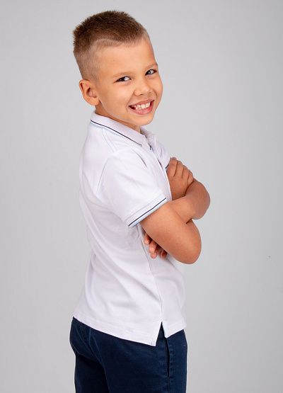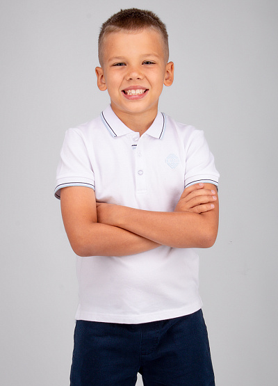 • Детское поло из хлопка от бренда Thomas Graf. Свободная модель. Отложной воротник с застежкой на пуговицы. Логотип сбоку. Короткие рукава. Контрастная окантовка по краям.