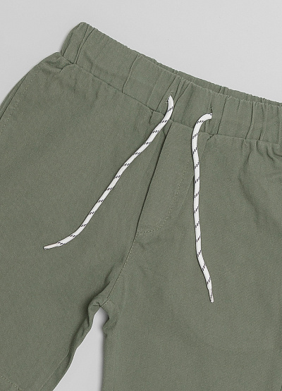 • Детские шорты цвета хаки из хлопка от немецкого бренда Thomas Graf. Свободная модель с эластичным поясом с контрастной завязкой. Прорезные карманы по бокам.