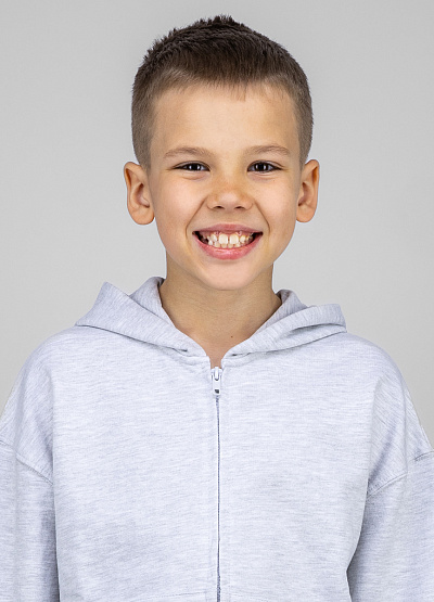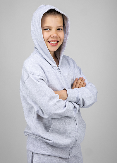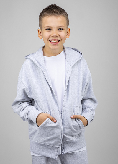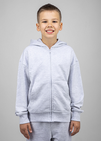 • Детская толстовка на молнии в светло-сером цвете — базовый элемент повседневного гардероба.