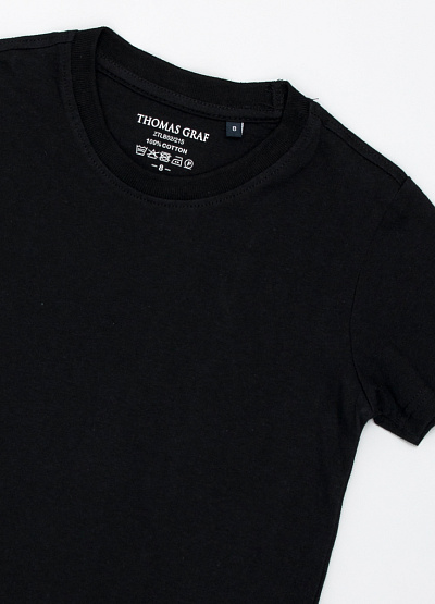• Детская футболка черного цвета от бренда Thomas Graf. Модель выполнена из хлопка. Короткие рукава. Круглый вырез.