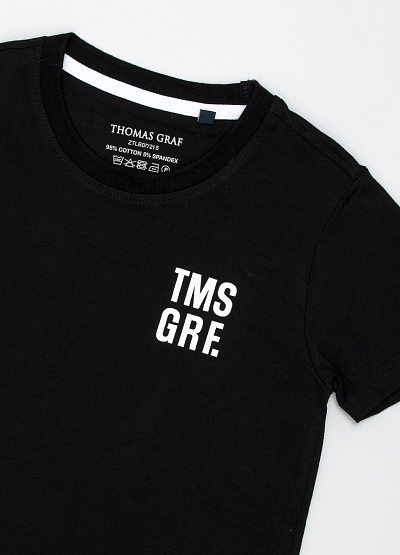 • Детская футболка черного цвета от бренда Thomas Graf. Модель выполнена из хлопка. Боковая сторона декорирована логотипом. Крупный принт на задней стороне. Короткие рукава. Круглый вырез.
