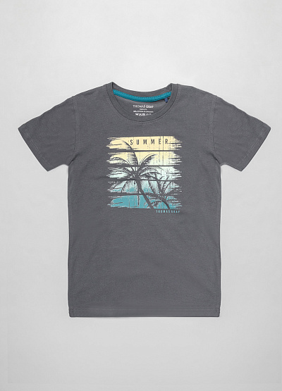 • Детская футболка для мальчика от немецкого бренда Thomas Graf. Модель выполнена из хлопка. Лицевая сторона декорирована крупным принтом. Короткие рукава. Круглый вырез.