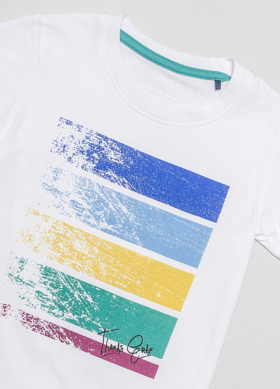 • Детская футболка для мальчика от немецкого бренда Thomas Graf. Модель выполнена из хлопка. Лицевая сторона декорирована крупным принтом. Короткие рукава. Круглый вырез.